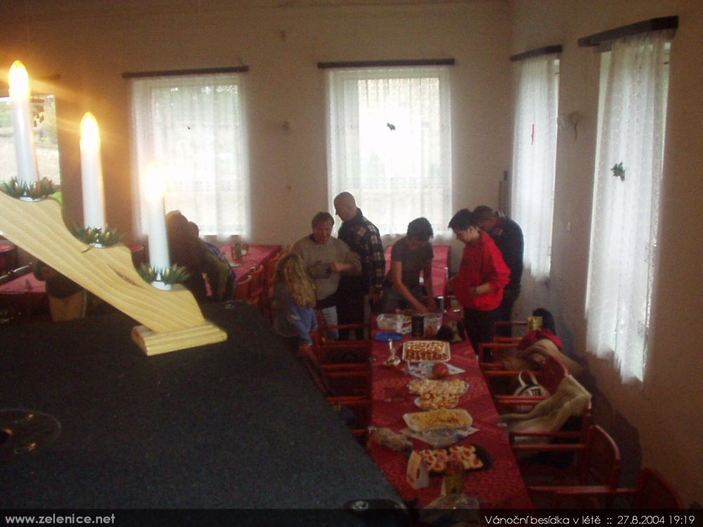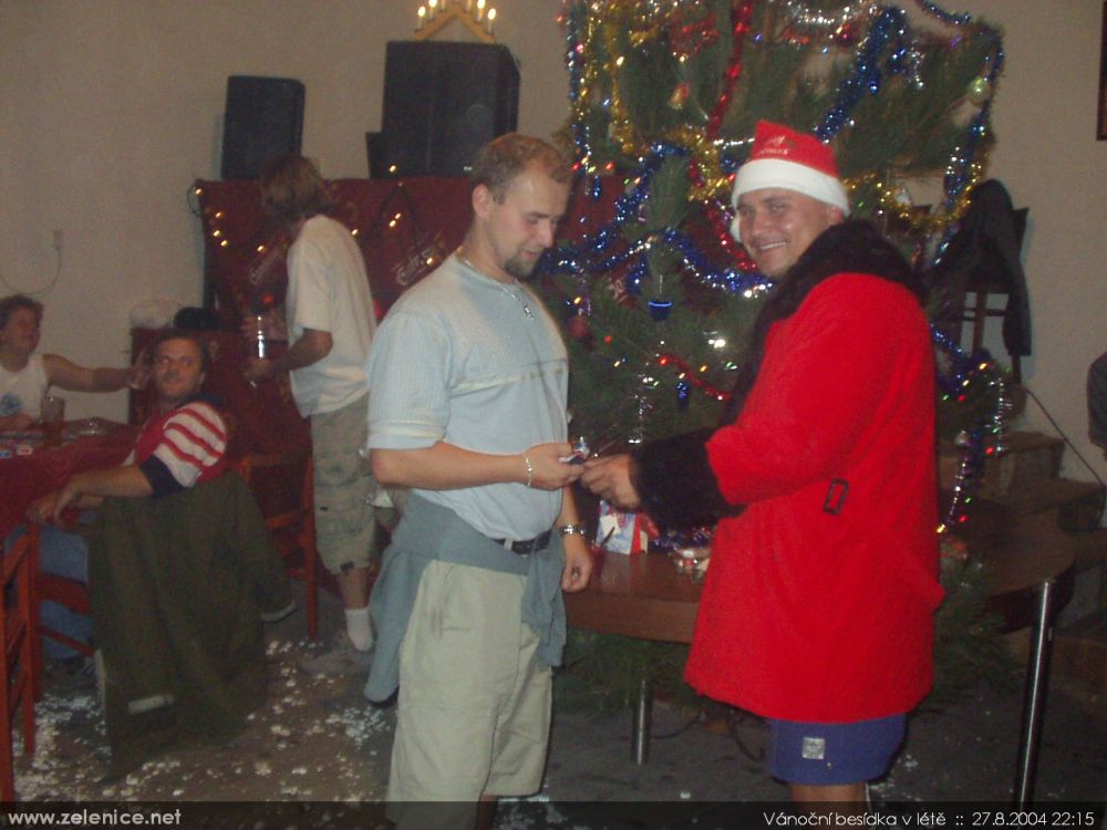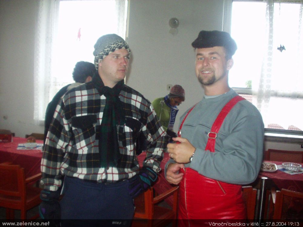 vÁNOČNÍ BESÍDKA V LÉTĚ (27.08.2004) Recesistická akce konaná za hostinského Davida na sále místního pohostinství v Želenicích (tehdy "U Kolosvěta").