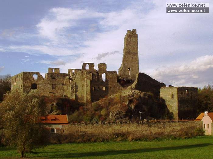 pokojův všelikých drahně v něm, též kapla vystavěná, pavlače a vížky při nich též cihlou přikrytý, pod ním sklepy v skále vylámaný, studnice hluboká, velmi pohodlná. Pod zámkem pekárna a jiného stavení nemálo, též maštale pro koně v jednom zavření, okolo toho bašty zdělaný jsou a příkopa slove val, kde se vodou nadržuje, kterážto na mlejn pod zámkem jde |
